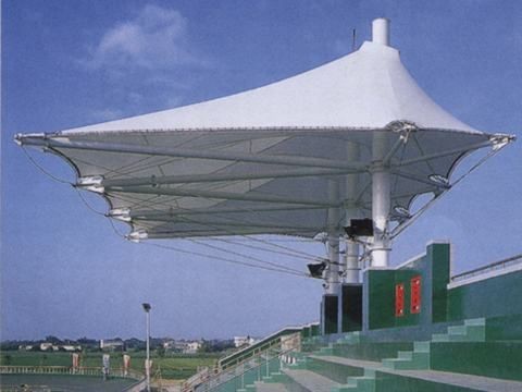 2、若是已經安裝完畢,並且膜材已經開始發黃,那麽不要強行用增白劑等直接刷洗,這樣很容易損傷膜材,導致膜材壽命大幅縮短,或直接破損。同時也不得私自進行刷漆處理,因為普通的白漆可能存在腐蝕性,會腐蝕膜材,同樣會破壞膜材表麵。一般解決辦法就是對球場體育看台的表麵重新進行塗敷工作。
